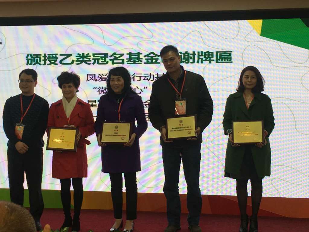 大良街道党工委委员梁伟文为冠名基金代表颁发牌匾